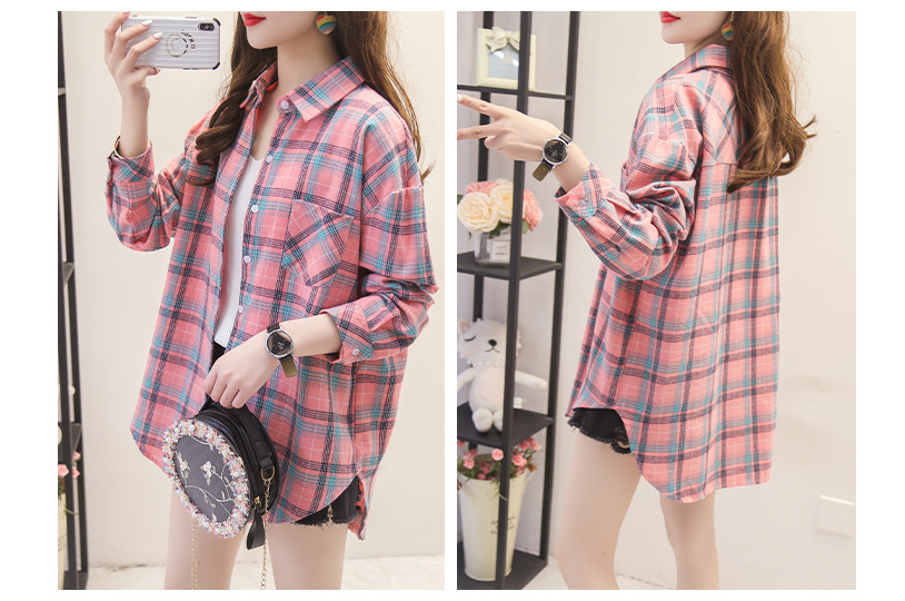 Pattern: plaid Neckline: POLO neck Sleeve length: long sleeves