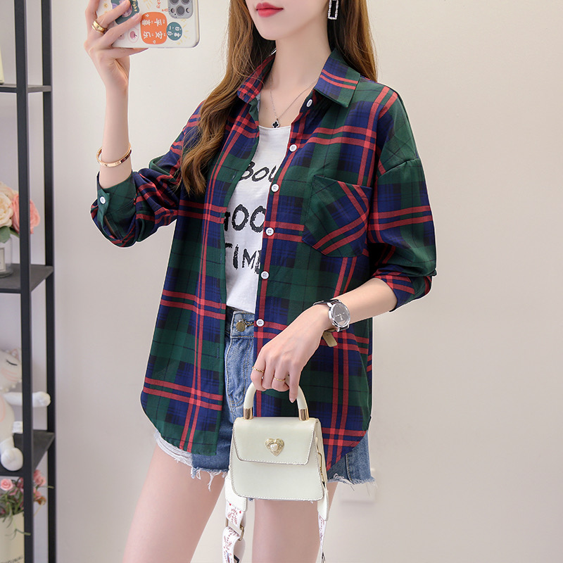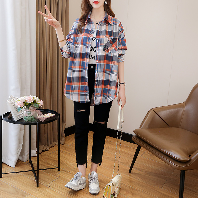 Spring and Autumn Han version loose school style long sleeve shirt to wear outside(春秋韩版宽松学院风长袖外穿衬衣)