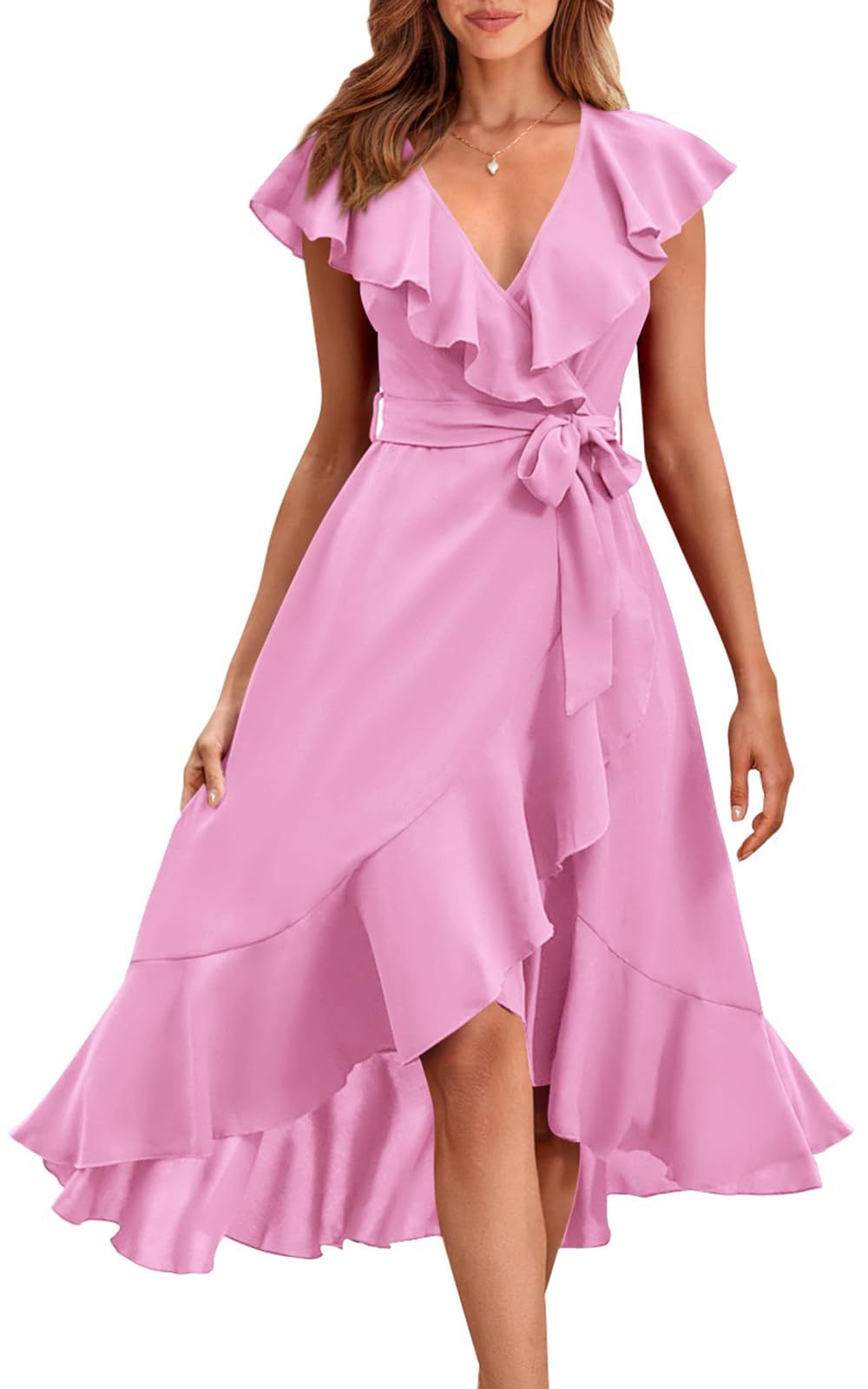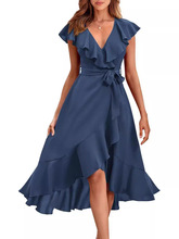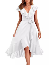夏款系带荷叶短袖中长款连衣裙参数
