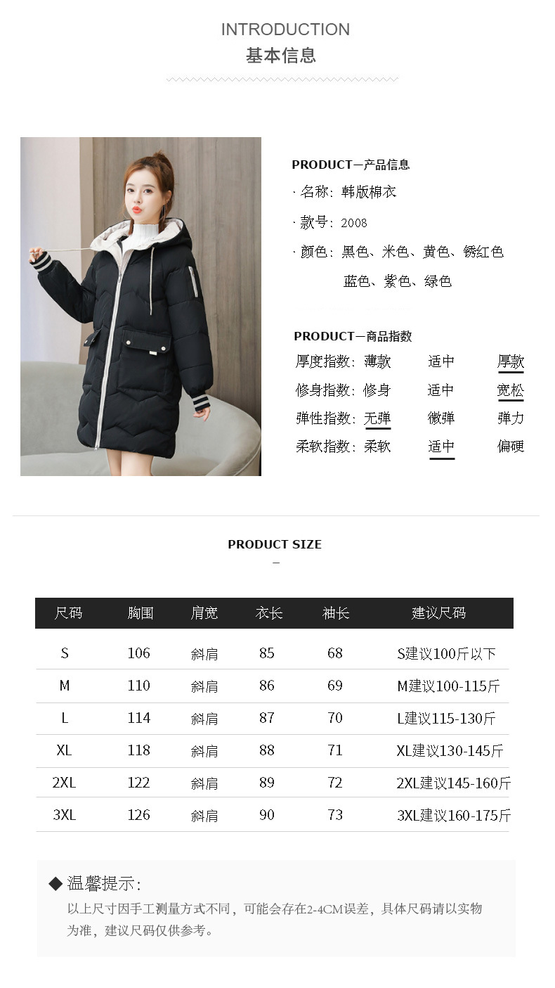 冬季松大码长款棉衣外套参数