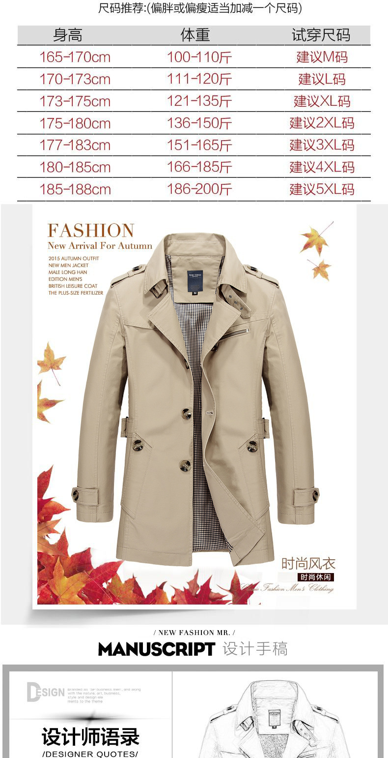 春秋季中长款休闲纯色纯棉男士夹克外套参数